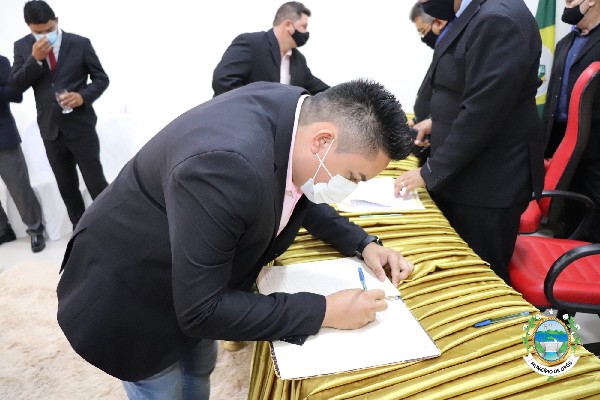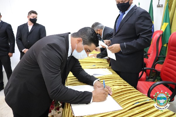 Registros da cerimônia de posse na Câmara Municipal, nesta sexta-feira (1).