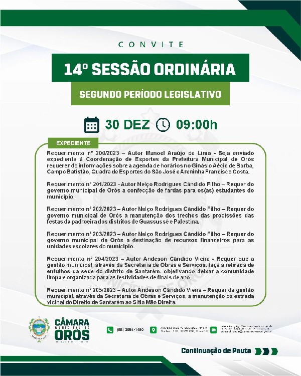 SESSÃO ORDINÁRIA 014 DA CÂMARA MUNICIPAL DE ORÓS DO 2º SEMESTRE LEGISLATIVO