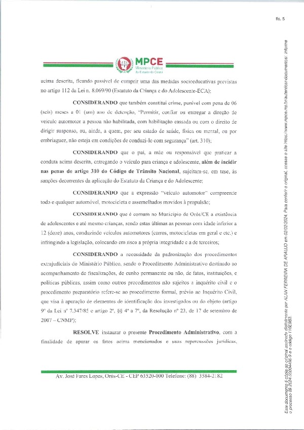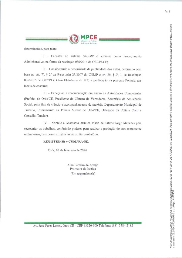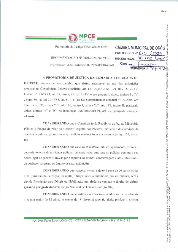 RECOMENDAÇÃO Nº 001/2024/PmJVORS da Promotoria de Justiça Vinculada de Orós