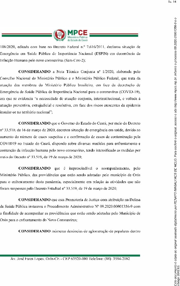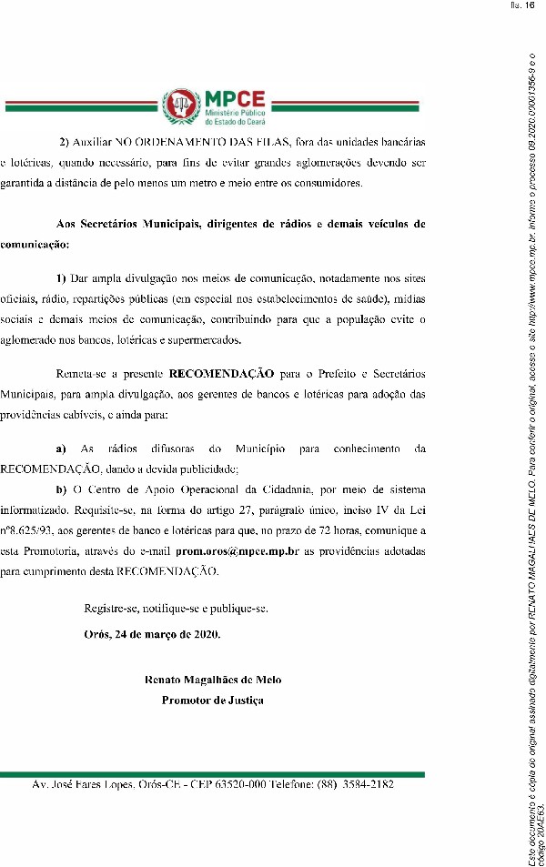Foto: RECOMENDAÇÃO DO MINISTERIO PÚBLICO DO CEARÁ PARA LOTERICAS E BANCOS.